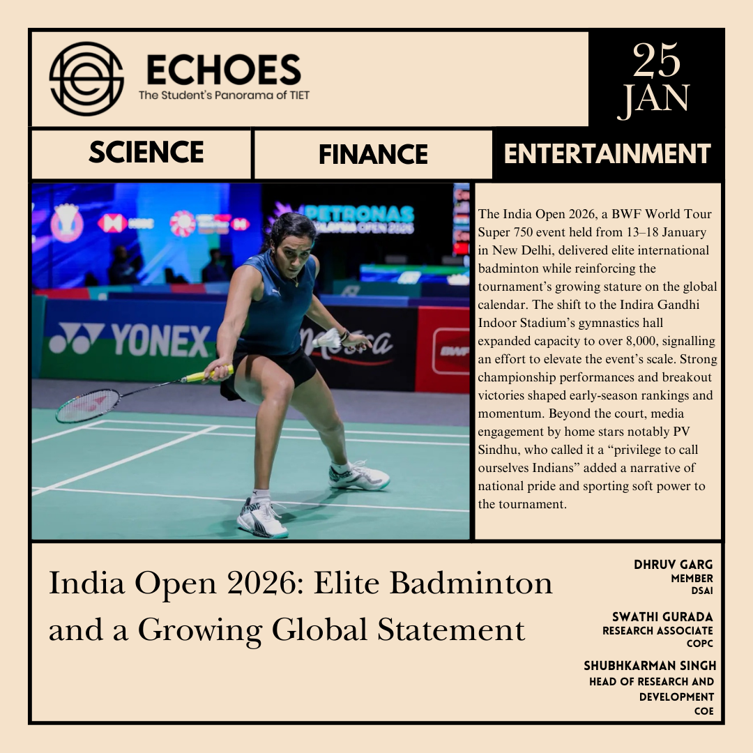 The India Open 2026, a BWF World Tour Super 750 tournament, was held at the Indira Gandhi Indoor Stadium in New Delhi from 13 to 18 January, featuring a prize pool of USD 950,000 and attracting top-ranked players from across the world. The event carried additional importance as a preparatory test for the BWF World Championships scheduled later in the year at the same venue.