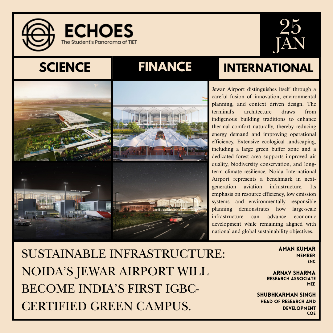 Sustainable Infrastructure: Noida’s Jewar Airport as India’s first IGBC-certified green campus.